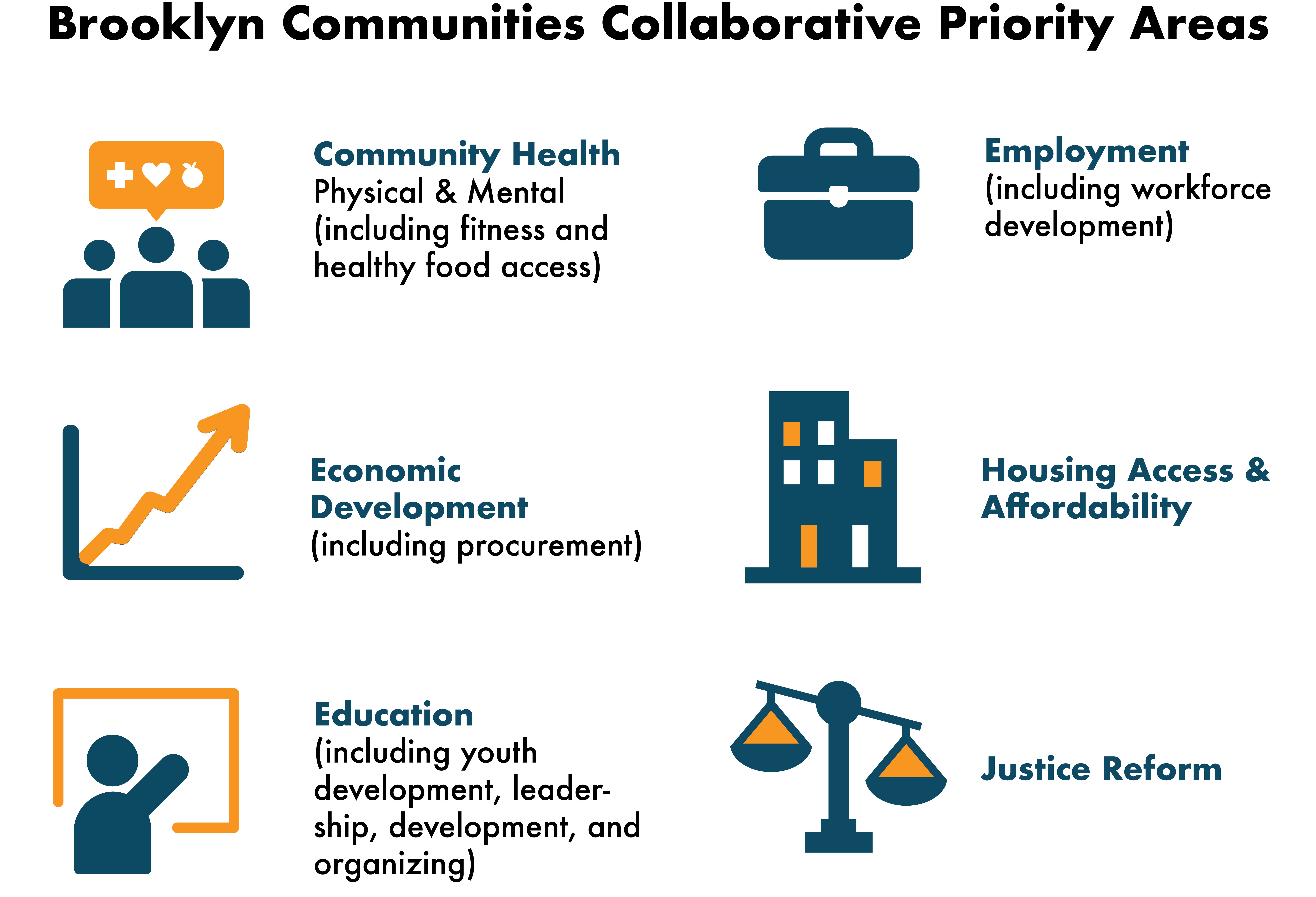 Most recently, CCB and the Coalition are building Brooklyn Communities Collaborative (BCC) as a permanent 501(c)(3) organization to formalize civic coordination, oversee ongoing implementation of the youth PAR recommendations, and support efforts to address SDOH via development of cooperative and community-owned enterprises. BCC incorporates the vision that long-time community leaders call Citizen Share Brooklyn (CSB). CSB focuses on the necessary elements to build a local democratic economy, including small business and cooperative development, linking anchors and local enterprises to help localize procurement, workforce development and policy advocacy to advance these goals.